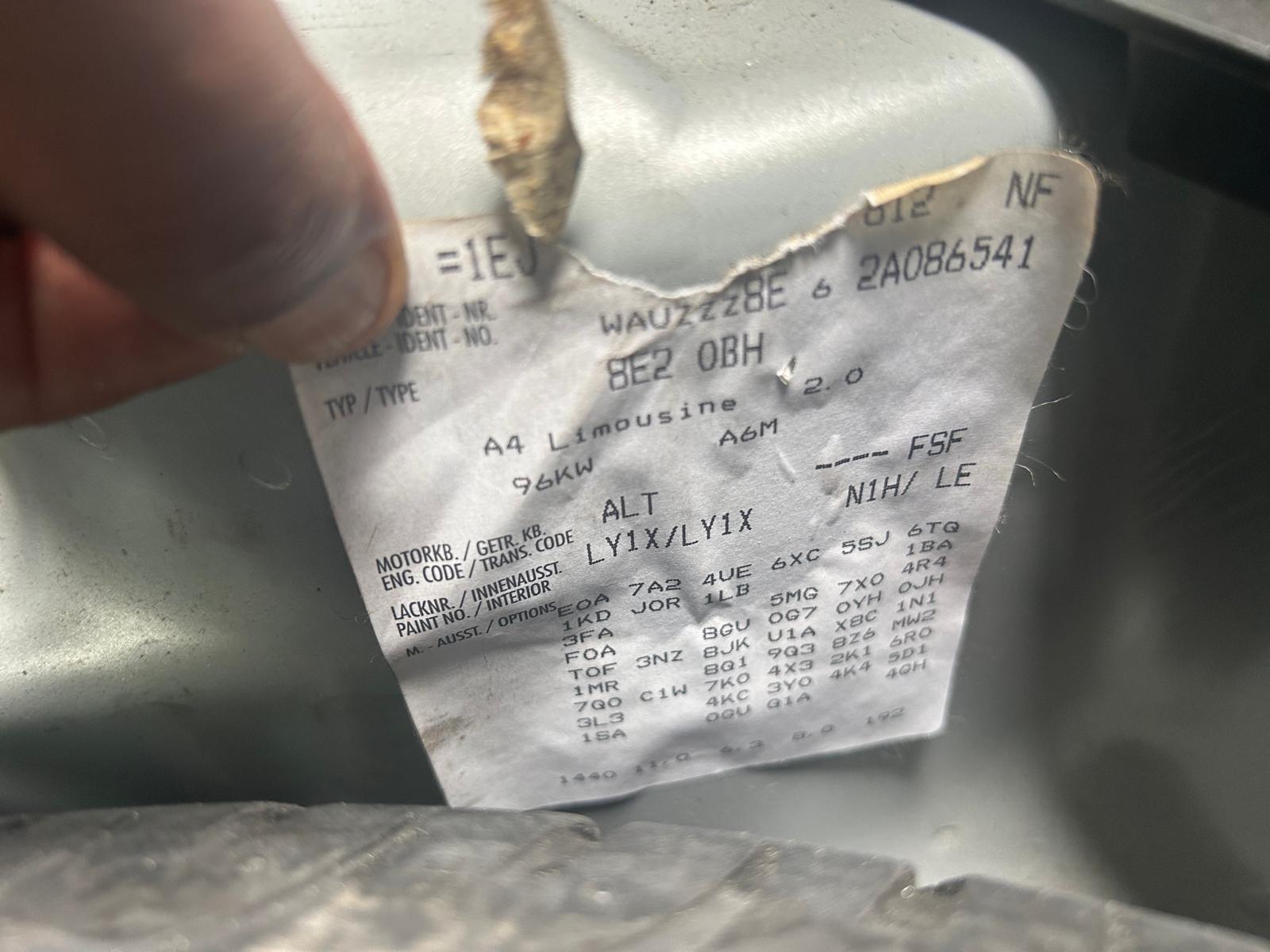 | Make / Model | AUDI A4 | Year | 2001 |
