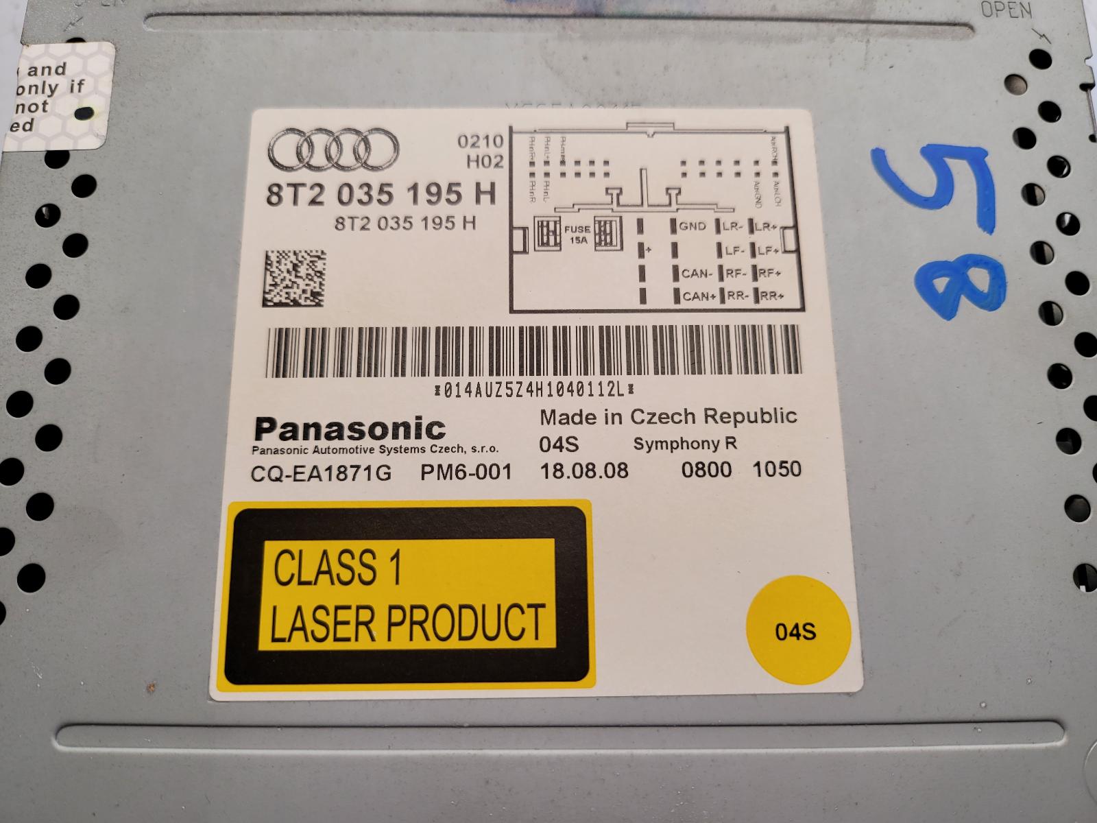 A5 2007 – 2012 HEAD UNIT, AUDI SYMPHONY, SD TYPE, 8T, 10/07-01/12