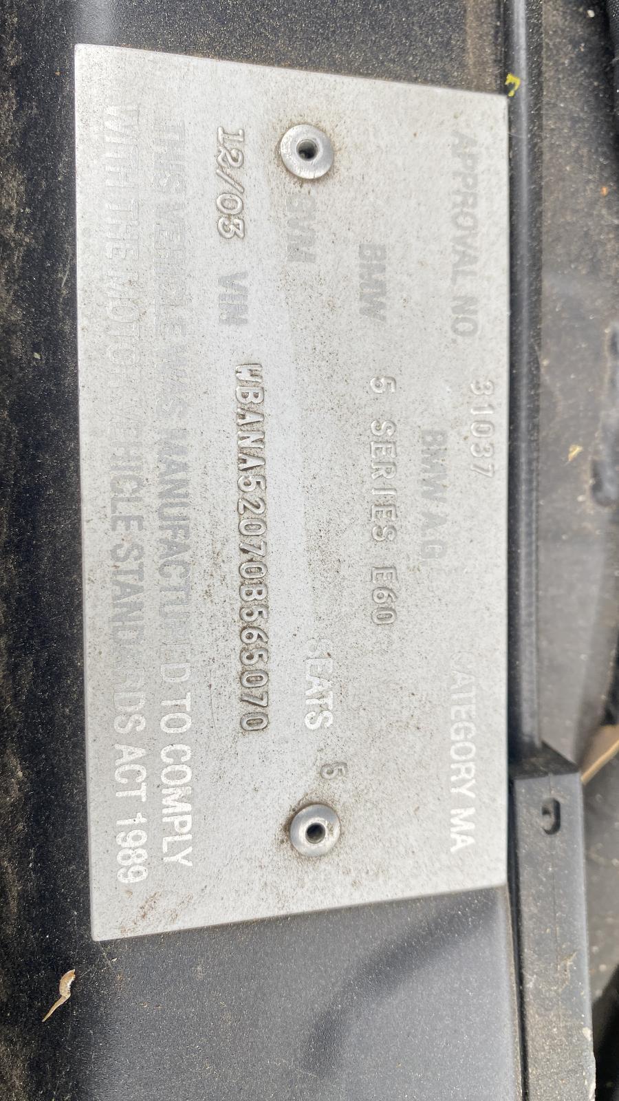 | Make / Model | BMW 5 SERIES | Year | 2003 |