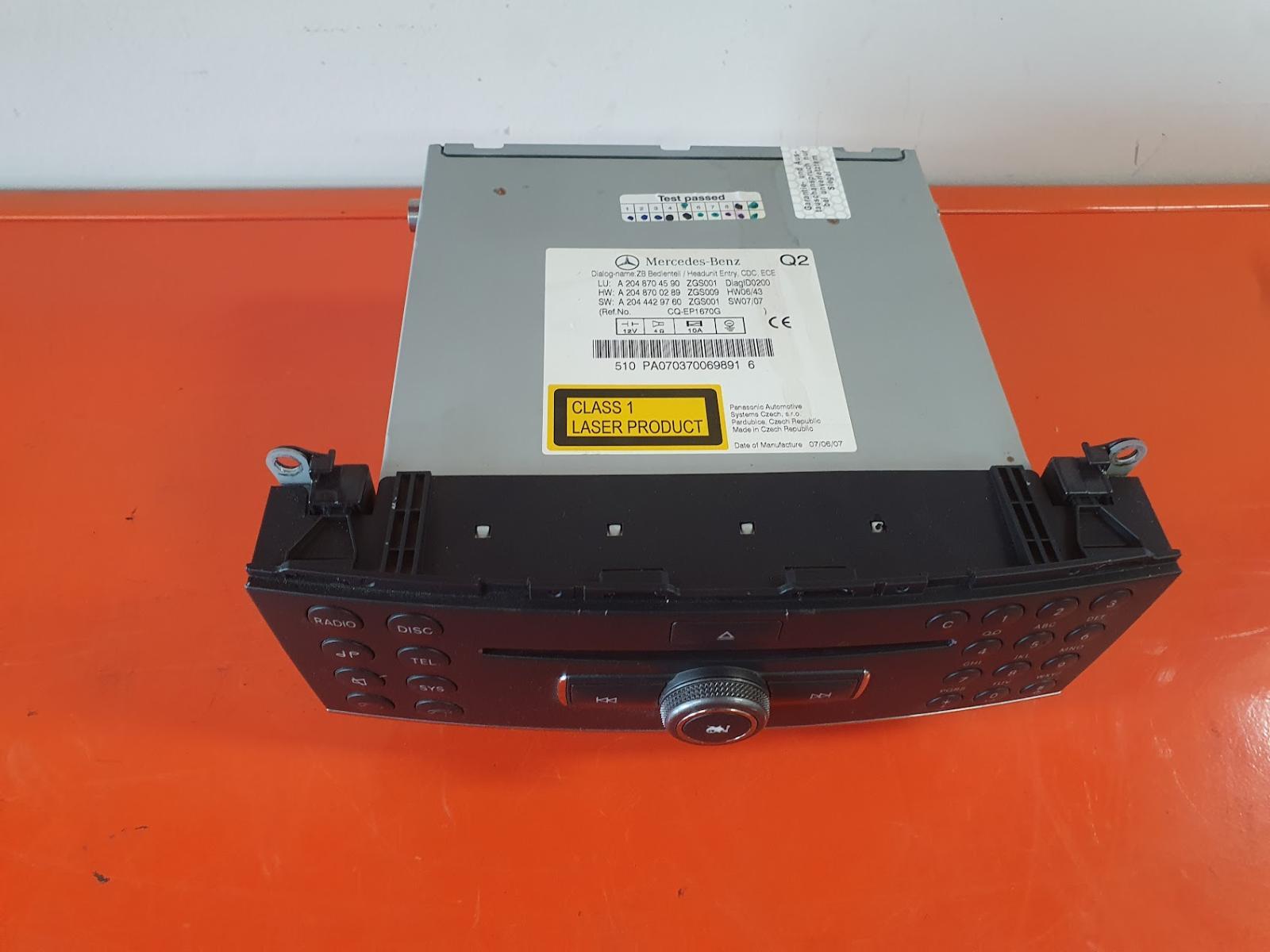C CLASS 2007 – 2011 DASH RADIO CONTROL/HEAD UNIT, SINGLE DISC CD PLAYER, NON SAT NAV TYPE, W204/S204,07/07-05/11