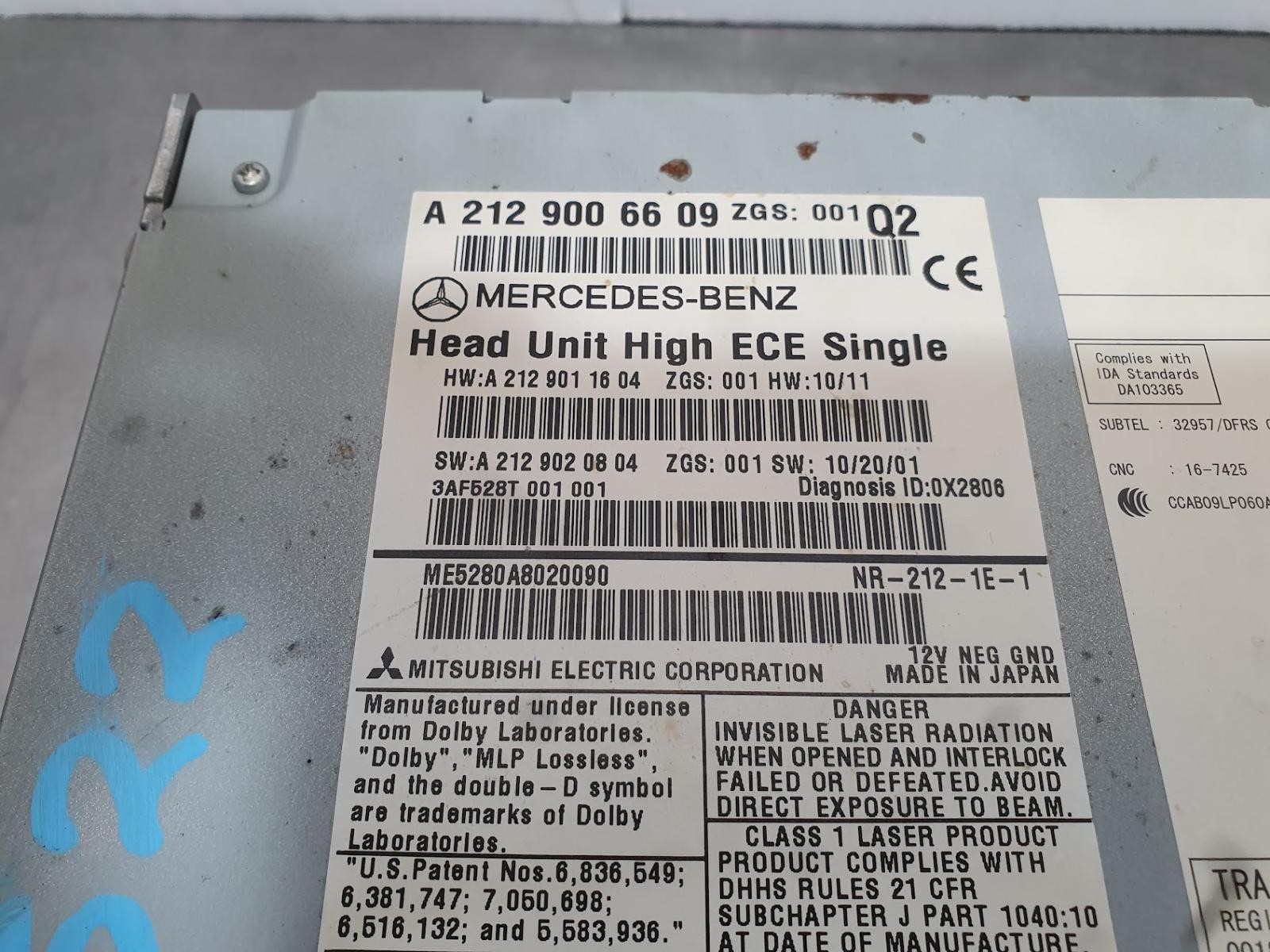 E CLASS 2009 – 2016 HEAD UNIT, COMAND APS, W/ SINGLE DVD TYPE, W212/S212/C207/A207, 09/09-