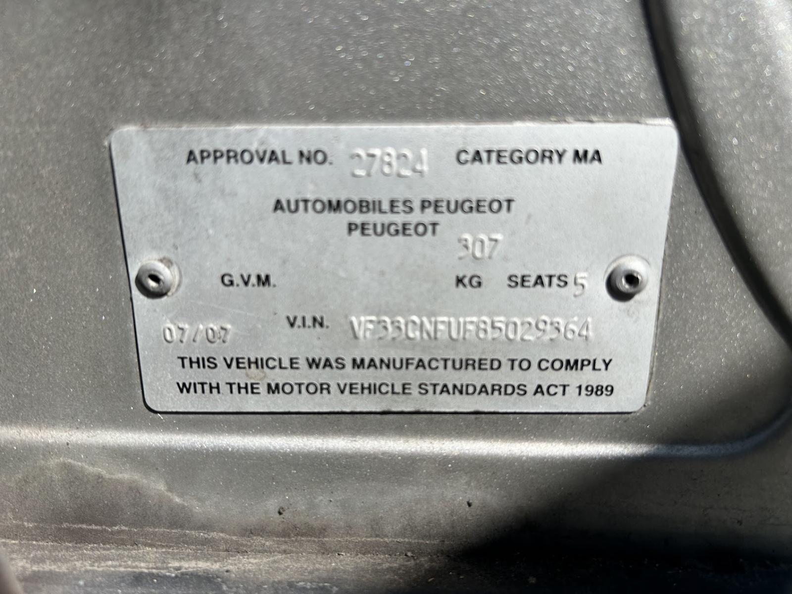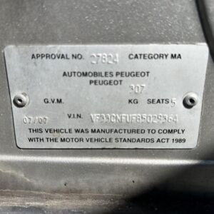 | Make / Model | PEUGEOT 307 | Year | 2007 |