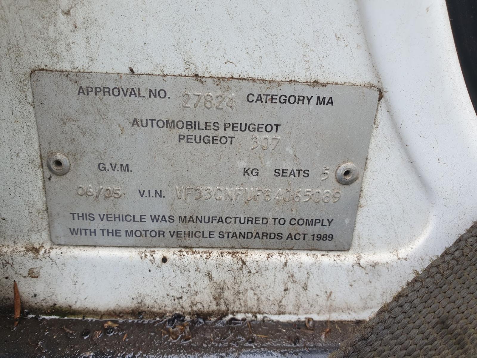 | Make / Model | PEUGEOT 307 | Year | 2005 |