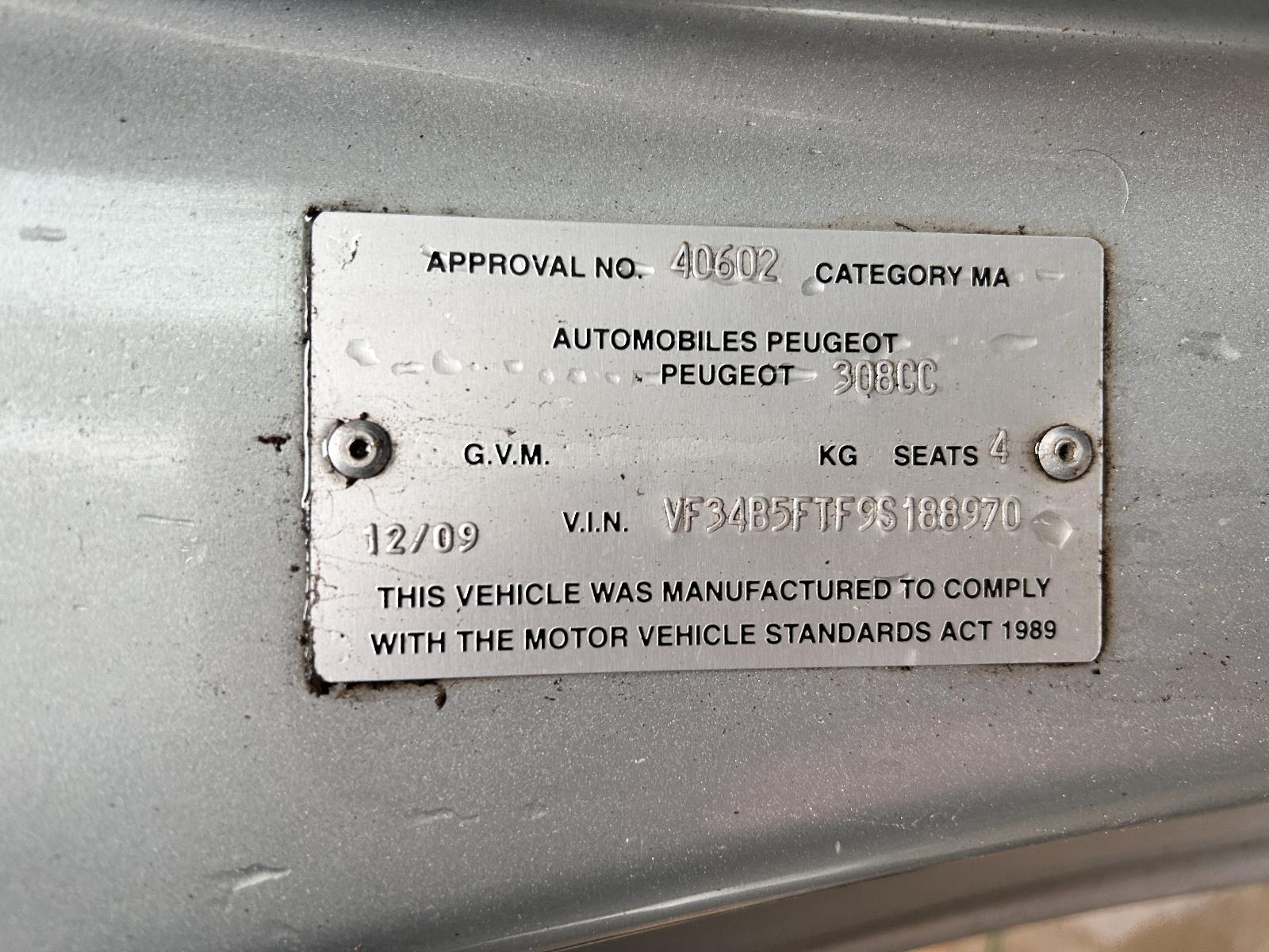 | Make / Model | PEUGEOT 308 | Year | 2009 |
